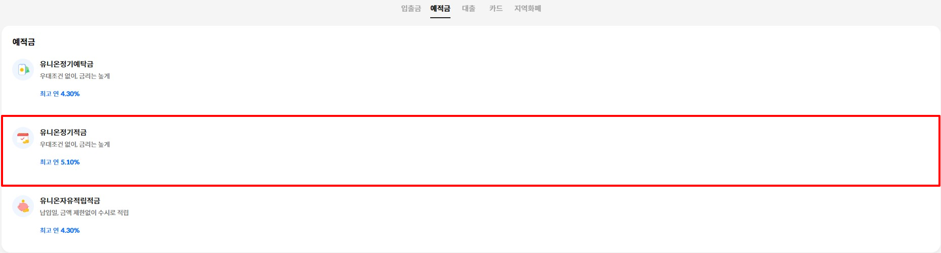 이동하신 페이지에서 유니온정기적금을 선택해주세요.