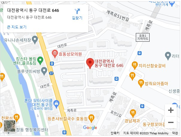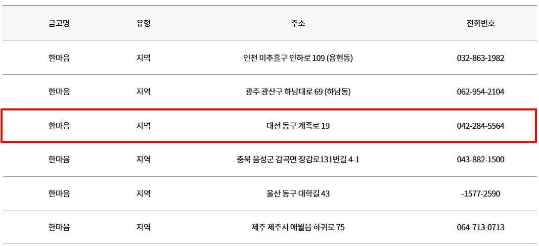 이동하신 페이지 검색창에 한마음을 검색하신 후 대전 동구 계족로의 한마음을 선택해주시면 됩니다.